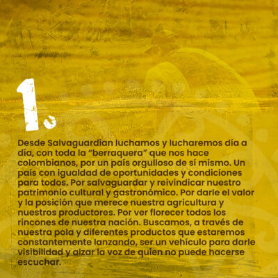 Hacemos lo que más nos trama: Polas una chimba cargadas de todo el perrenque que nos hace colombianos. Somos Salvaguardián, tu cervecería rola de confianza que busca salvaguardar nuestro patrimonio cultural y gastronómico.